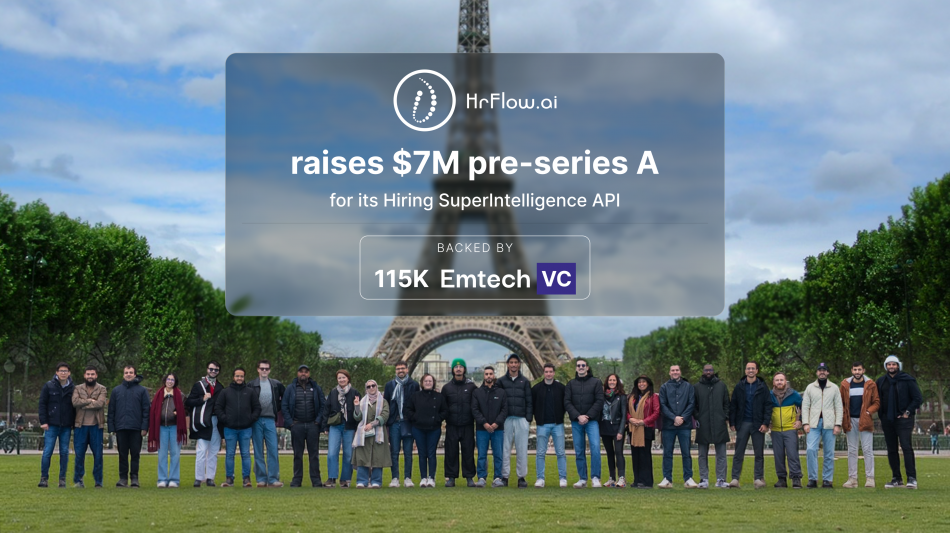 HrFlow.ai, a pioneer in Artificial Intelligence applied to Human Resources data, announces its second fundraising round of $7M (pre-Series A) today.